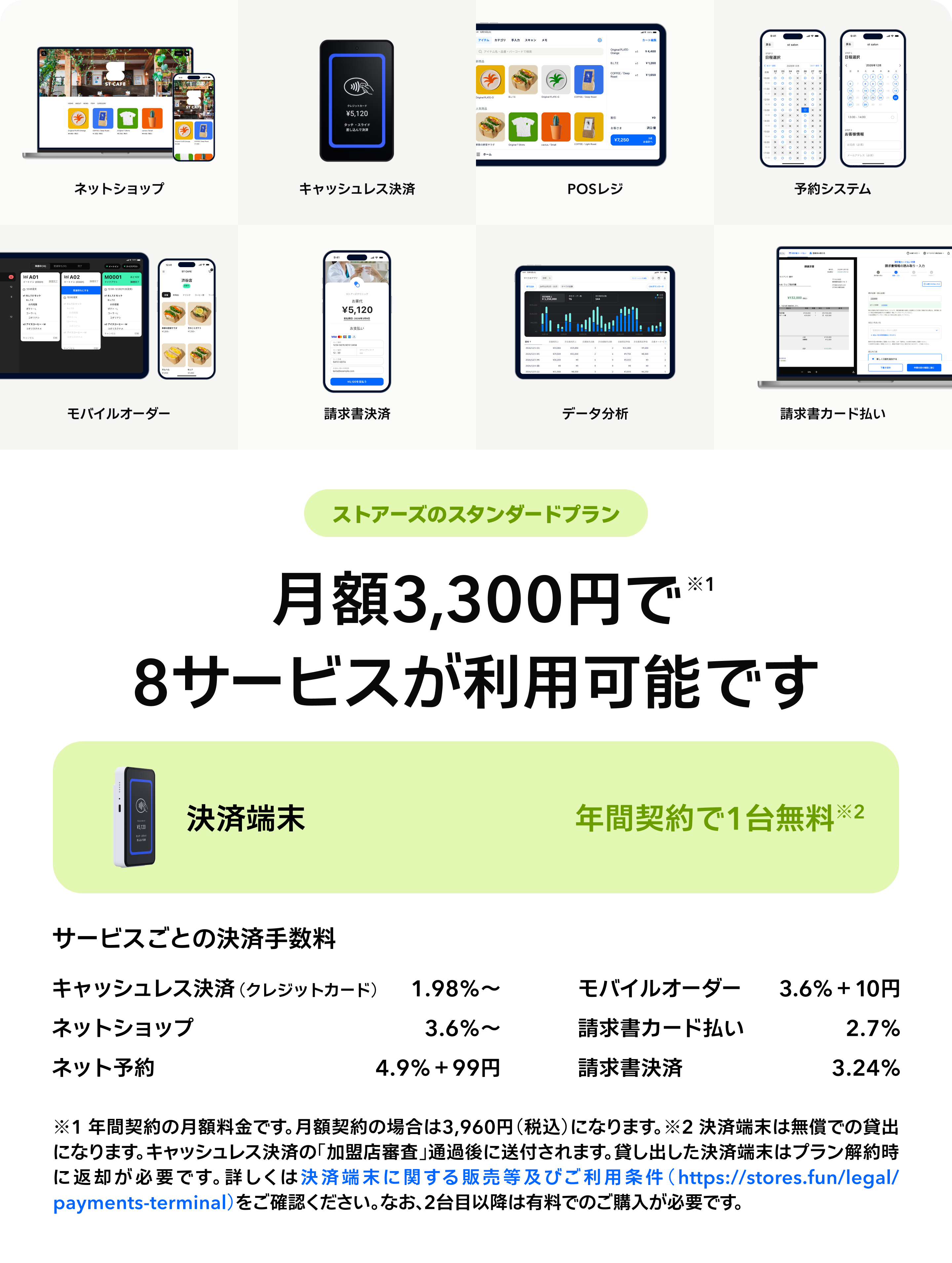 - 2025年3月27日以降、同一事業者内で「STORES 決済」を利用した対面もしくは請求書の決済の実績がない方(※決済サービスをご契約中でも、対面もしくは請求書の決済の実績がなければ対象です)