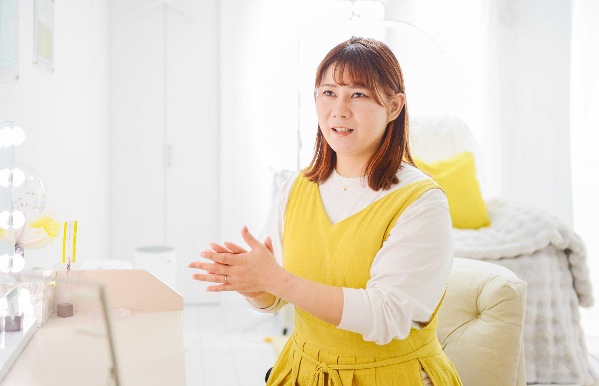 また、まつげサロンというと、照明が暗く、落ち着いたBGMが流れていて……というイメージを持たれる方もいるかと思います。しかし当店では、気持ちが明るくなるように、あえて明るい色を基調とした雰囲気にしています。施術後の目元の変化をすぐに実感していただきたいという思いもありますね。その他に、お客さまがリラックスできるように、季節にあわせたアロマを焚いたり、音楽を流したりしています。