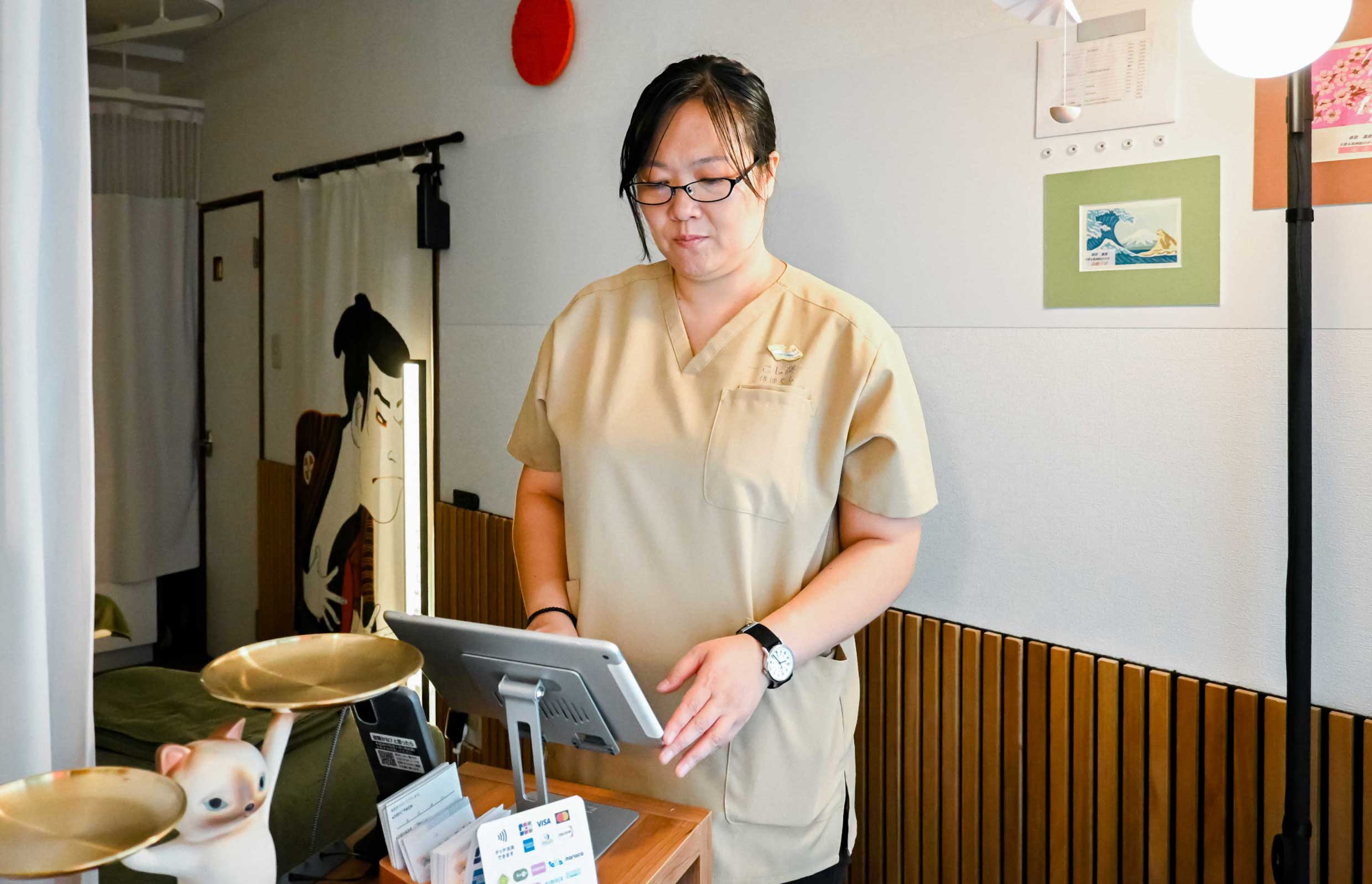 また、「STORES 予約」「STORES レジ」「かんざし」が連携していることで、複数の媒体からの予約情報が自動でPOSレジに連携されます。予約情報がそのままPOSレジに連携され、さらにポイント利用の場合は、ポイントが差し引かれた状態でレジ上に会計金額が表示されるので、複数の画面を行ったり来たりせずに済みます。また、お会計もポイント利用分の計算を手作業で行うことなく完了するんです。現在は、お会計自体は1分もかからずに完了していますね。会計で手間取って時間がかかってしまうと、次の施術にも影響しますので、スムーズかつ短時間で会計が済ませられるのは大きな価値があると思います。
