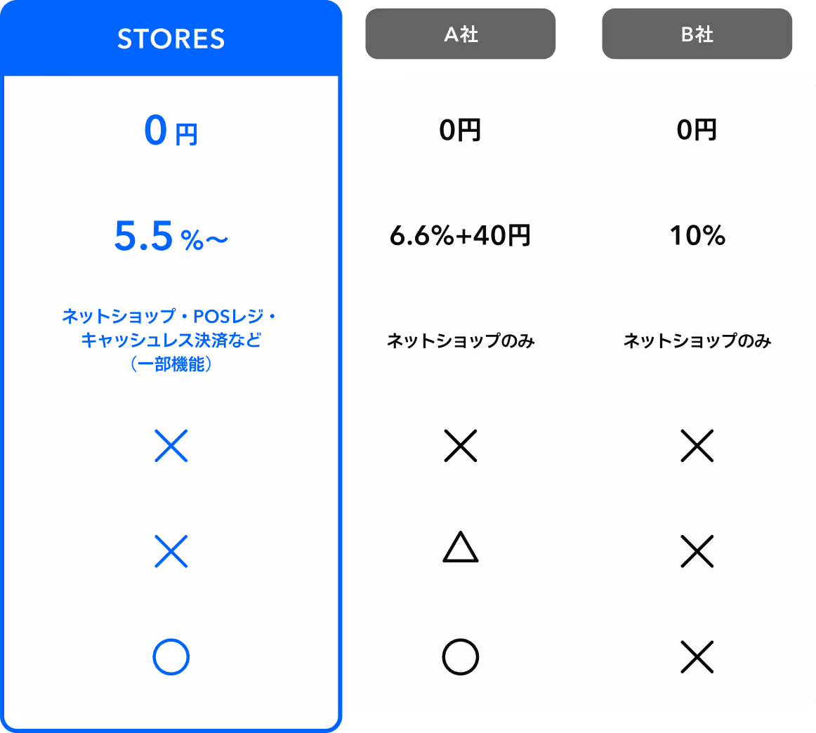 ※3 対面のクレジットカード決済手数料。年間キャッシュレス決済額が3,000万円以上の事業者の場合は、2.98%になります。詳しくはFAQ「STORES フリープラン・スタンダードプランの概要」をご確認ください。