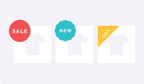 アイテム画像の左上に画像をシールのようにつけることができる機能です。豊富なテンプレートからもオリジナル画像を付けることも可能です。
