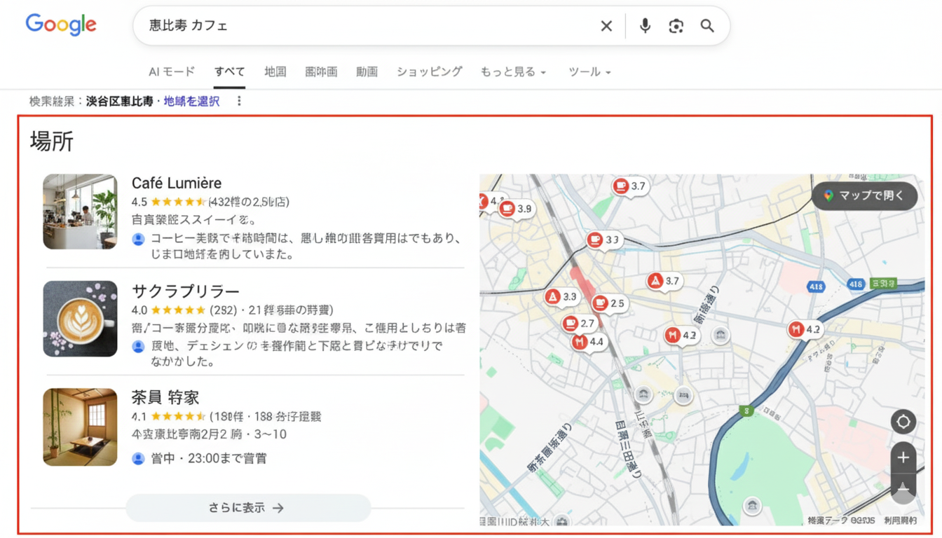 Google ビジネス プロフィールの整備は、MEO(マップ最適化)とも呼ばれています。情報をしっかりと充実させることで、検索結果全体での露出を最大化することが可能です。
